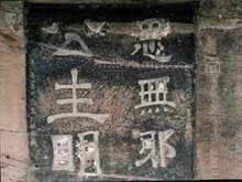 始建于南宋、地处武胜县真静乡书岩村的真静书岩,环岩长210米,高3至6米,刊刻唐至清代各书法名家篆、隶、皆、行、草各体大小字600余个。蕴唐宋之银钩,展历代巨笔之风流。临岩一望,凿痕斑斑,蔚为壮观。 沿岩前行,自西向东,无名氏的"惩忿窒欲、进德修业"8个0.8米见方的大字跃然人目,篆书苍劲有力、圆润流畅。向前慢行二三十步,唐代李阳冰手书小篆"道山"2字呈现眼前,"惟肖"2字已剥蚀模糊。再前行,有武功苏唐卿书"竹鹤"2字,似双鹤亭亭玉立,独具匠心。书岩中段,35厘米见方的"仇池"2字下有一石室,深约4米,宽3米,高2.5米。室中有一直径1米的圆井小水从石够中泻出,涓涓入井,四时不竭,这就是传说的"仙人洞"。洞内石榻可供坐卧小慈。洞左有道光乙西冬(1849)陆玑手书的"寿"字,右侧有据"仙人洞"的楷书"龙门凤穴",另一壁刻有嘉熙3年(1239)正月初亡吴春帆等7人游书岩时抒怀古之幽情而草书的五言古诗4首。书法流畅,镌刻精细。从"宾皆夸凤穴,我独羡龙门;文社人虽杏,书岩迹尚存。烟迷千树雨,犬吠几家村;留得光芒在,千秋仰少温"及"山泉煮茗好,闲啜意如何"中足见诗句之清丽。字宽35厘米、高50厘米的隶书"恩无邪,公主明"是宋丞相温国文正公司马光的遗迹,据考系李元庚于嘉泰3年(1203年)镌刻,距今已近800年历史。清人何苏诗:"永和书法(王蠢之书法)渺难寻,几字镌空峙到今,苔藓未湮虫鸟迹,风棱岂被雪霜侵……司马阳冰何处是,举头犹见古人心。"备赞其悠久。其下有1.5米见方的颜体楷书"书岩"2字,笔力劲拔。自"书岩"折而朝南,壁上显有枝叶雕花,传为卧龙浮雕。前行转向东南方,是深刻石壁的皤龙浮雕,展爪欲飞,栩栩如生。 为保护书岩,早在清嘉庆13年(1808年)知县沈远标即于"仙人洞"旁立有特示碑:"书岩为定邑(武胜古称)胜迹;不得稍有损坏……"共9行170字。而光绪定远知县姜由范的咏书岩诗:"峭壁层层列雁行,搜奇采访白云乡;山林赖有图书富,风雨难消翰墨香。巨笔几人留姓字,大名从古重文章;登临我亦心仪久,纵负诗才不敢狂。"武胜县人民政府1981年11月13日公布书岩为重点文物保护单位,1982年2月18日县政府又作出了保护书岩的3项新决定,书岩得以保护完好。 |