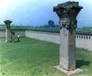 (5)赵家村东无铭阙 赵家村东无铭阙位于土溪乡赵家村东,距冯焕阙500m左右。建造年代可能晚至西晋。赵家村东无铭阙原为双阙,现仅存东阙。除阙顶外,高4.17m。建造风格、形制与赵家村西无铭阙相似。阙身正面素平无铭文,亦上端雕朱雀,下端浮雕玄武,西侧壁雕青龙,阙身之上的斗拱层四角为力士,承托整个楼部。楼四周布满雕刻画像。正面刻兽首,背面刻兽尾。该阙背面猎射场面中,左面是一犬追兔,右边是猎人作弯弓射杀状,场面动态逼真,引人入胜,如亲临其境。此阙上的朱雀、玄武、戏虎、庖厨、出猎等浅浮雕,为沈府君阙、冯焕阙所无的精美佳作,于1956年列为省重点文物保护单位。 (6)王家坪无铭阙 王家坪无铭阙位于青神乡平六村王家坪,屹立于冯焕阙与沈府君阙之间。建造年代可能晚至西晋。 王家坪无铭阙原为双阙,现仅存东阙。除屋顶外,阙高4.19m,建造风格与赵家村东、西无铭阙相似。阙身正面素平无铭文。唯上端浮雕朱雀,下端浮雕饕餮,西侧刻青龙。枋子层四角为力士,后侧转角处刻有双螭嬉戏。楼部第三、四层石块四周布满精美雕刻,如“荆轲刺秦图”、“玉兔椿碓”、“百戏”、戏虎等场面以及负重者、骑兽者、执杖者、庖厨、人首鸟身、铺首等“怪物”图像,形态生动,栩栩如生,保存较好。其中尤以荆轲刺秦王的画面紧张逼真,再现了历史上这段有名的故事,是一幅不可多得的石刻佳作。1956年,列四川省重点文物保护单位。 (7)赵公神道碑 赵公神道碑位于土溪乡碑帽村的公路旁,碑前右侧有一棵黄桷树。碑为一巨大青砂石建造,通高4.95m,宽1.5m,厚0.46m。为川东地区第一大碑石。 |