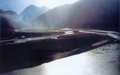 从山顶俯瞰大地,烟波浩渺,良田万顷。金钟山顶尖有观音阁,始建于唐,历经千秋,几度废兴。90年代重修,三重大殿金碧辉煌,儒、道、仙、佛分殿同奉,实为少见。墙上壁画精妙绝伦。晨钟暮鼓,馨声入耳,钹音绕梁。 金钟山背靠龙塘。龙唐山如女佛仰卧苍穹,山腰有怪石参差、石笋林立的天然“仙人洞”。成群的驼峰,如鹰的巨石,更添金钟灵秀。再后有两峰高耸,似男女二佛一立一卧。山下有镇为大树,南丝绸古道必经之地。60年代中国农业学大寨,四川农业学大树的典型“大树”就在这里。镇中禹王宫曾囚石达开5000将士并分加害于此,现存大殿石墩,还在述说着那段悲壮的历史。大树新沟和河南等乡,多有红军长征时的石刻和标语留传至今。 大渡河绕山而去,江边苇花萧瑟,轻风微月,情波万里。 |