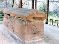 棺首左侧竖徘隶书刻墓志铭“故上计史王浑伯昭以建安拾六岁在辛卯九月下旬卒其拾七年六月甲戌葬呜呼哀哉”。从右至左凡5行35字,为汉隶书法精品。棺首右侧刻1人倚门而立,露其半身,身着宽袖长服,上有云带,下有护腿甲。棺左壁刻一龙,头有角,身有翅,背有鳍,口衔绶带。棺右壁刻一虎,肩有翅,身刻环节纹。棺后端刻一玄武,一蛇缠绕其身,两首相亲。石刻意境深邃,造型生动,刻工精巧。芦山汉刻为世人赞叹,我国著名美学家、雕塑家王朝闻给予高度评价,誉为“汉魂”、“汉艺精粹”。 |