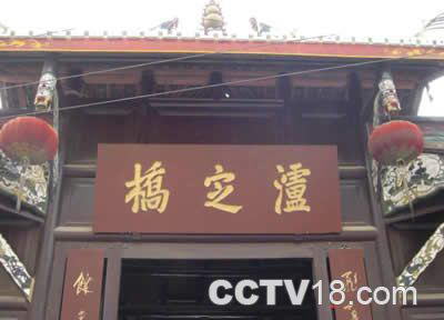 泸定桥是一座悬空架在大渡河上的铁索桥,泸定桥最早出名是康熙皇帝亲自定名并题写的。当时,这里(古称泸河)发生昌侧集烈之乱被平定,所以叫泸定桥。1935年,红军长征路过此处,受敌阻击,经过两小时激战," 十八勇士 " 飞夺泸定桥,因此而名扬中外。 清康熙四十四年(1705年),康熙皇帝因军事需要及藏汉贸易方便下旨修建泸定铁索桥,并御笔亲题桥名“泸定桥”,意为骚乱已平,泸河已经安定。泸定桥结构特殊,造型别致。桥身由十三根碗口粗的铁链组成,其中底链九根,扶手四根。每根铁链由862至977节铁环相扣,均由熟铁锻造,共重21吨左右,桥身净空101.67m,宽2.9m,犹如十三条巨蟒横空出世,令人惊叹不已。桥台全用条石砌就,形如碉堡,下设落井,用生铁铸成的地龙桩与卧龙桩锚固铁链。桥亭为典型的明清建筑,飞檐翘角、古朴大方、造型别致。亭脊游龙走兽栩栩如生、十分壮观。