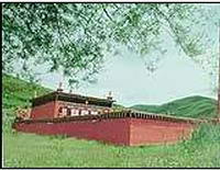 岭·格萨尔王庙就建在吉苏雅给康多的那块酷似青蛙的巨石旁。据有关资料记载,该庙建于清道光年间,是当时的林葱土司为纪念自己的先贤,特地在岭·格萨尔降生的地方修建的,同时还委派当地著名的噶玛噶举派寺庙--岔岔寺的喇嘛管理,所以,格萨尔王庙便成为岔岔寺的一个组成部分,它们之间相距大约为一公里左右。据说当时的格萨尔王庙内除塑有岭·格萨尔跨马征战的威武铜像,岭·格萨尔的爱妃珠牡和大将丹玛、辛巴等的泥塑像外,还有被林葱土司世代所珍藏的岭·格萨尔的象牙朱红印章,征战时期使用的铠甲、兵器,总管工绒查察根的家谱,大将年查阿登使用的宝剑,以及岭·格萨尔岳父使用过的轮珠等文物。 庙内墙壁四周绘制了许多精美的壁画,"神庙四壁的壁画内容主要是:孟布东族〔又写为穆布董族〕的历史及岭六部上、中、下三十员大将、八十名英雄、十三位保护神、格萨尔的十八个妃子、岭葱土司家的历史等。壁画对以上这些丰富内容作了详尽、真实、细微的描绘。 |
