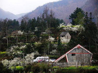 山墙具体承重及防火功能,山花为吉祥图案。布依族村民极重视坐山朝向、开门放水,对坐山朝向,整体居住环境错落有致,和谐美观。一般装饰部位为门、窗、屋檐及门簪,大门门簪多为八卦乾坤图案,木雕分置左右,设腰门。腿子墙粉底花饰及山墙花饰为音寨布依族民居所特有的寓意吉祥的民居建筑符号。 |
