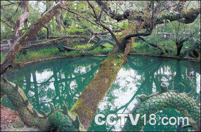 沿盘龙江以北上溯而行,到达坝子边缘,可见一座高大雄伟的大坝,那就是著名的松花坝水库。水库大坝始建于元代,是著名的赡思丁·赛典赤为根治昆明水患而谋划建成的。雨季蓄水防洪,旱季又可供饮用灌溉,至今如此,数百年来造福于民。 松花坝水库所蓄之水决非只靠雨水,主要来源于上游河流。沿松花坝水库北行,可达嵩明县白邑乡。白邑又名邵甸,昔称滇源。这里是松花坝水库上游,系盘龙江正源。此地泉眼遍布,过去曾有“白邑九十九眼龙潭”之说。如今,较大的泉眼尚有青龙潭、黑龙潭、白龙潭、黄龙潭等。 黑龙潭位于白邑龙潭营村南,远望是一座不高的小山,山脚修有一座寺庙,名“黑龙潭寺”,始建于明代。现存正殿三间,南北厢房各五间,南北配殿各三间,戏台一座,财神庙一座。正殿前有一块光绪皇帝题写的匾额,上书“盘江昭佑”四个大字,右题:“钦命太子太保兵部尚书云贵总督部堂白山伊里布吉旦”,左边落款是“大清光绪十三年季春月下浣日吉旦”,中有一玺印:“光绪御笔之宝”。泉眼就在庙中的龙潭。潭底望去,呈青黑色,故名黑龙潭。泉水涌流不已,水量很大,当地百姓形容说“有牛身子大的一股水”。水从潭中涌出,形成一条小河,汩汩向南流去,注入松花坝水库。 清澈的河水中,生长着海菜花。花瓣白色,花蕊黄色。此花品性高洁,只生长在水质优良的湖泊河流中。以前,滇池中就生长着海莱花,如今早已绝了迹。