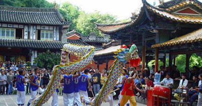 白龙寺座落在秀山南面的茂林之中,是后山的唯一建筑,寺院古朴典雅,与周围环境十分协调。近年来扩建了部分亭阁游廊及服务设 施,引水上山,凿池培植荷花及各种花卉草木,成为秀山公园又一新的游览点。秀山之秀在于绿,茂密的林木把整座山掩盖得严严实实。山北麓翠竹万杆,青翠欲滴;山西密林间灌木丛生,野花点点;山东面奇松参天,杉栗葱翠;山南松林似海,涛声如吼。种类繁多的花草树木,一年四季争奇斗艳,各寺院中也是花木扶疏,松柏森森,绿杉撑天。秀山不仅有山川之秀丽,更有历代墨客骚人、学者名宦之吟咏,使秀山成了“匾山联海”和碑林。至今保留在秀山的匾联碑刻有200余副(块),这些匾联碑刻,洋溢着诗情画意,书法均属上乘之作,使诗、书、画、景和精美的建筑珠联璧合。 |