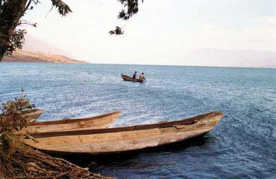 关于程海的形成,《乾隆永北府志》记载:“俗传,昔本陆地,一姓陈者居之,一夕成海,故名。后易陈为程。”此乃附会之说,实为新生代第三纪中期(距今1200万年以前)喜马拉雅期造山运动形成断裂地堑,中陷低凹之处聚水成湖。这种湖泊,地质学上名为陷落湖。 程海南连期纳河谷,北临三川盆地,东西两侧青山对峙,湖水透明如镜,夏秋渔汛来临之时,鲤鱼、白鲦鱼、丁钩鱼、红翅鱼、鲫鱼等,每年要捕上百万斤。1989年引进太湖银鱼养殖成功,年产800多吨,成为出口创汇产品。 程海湖区气候属中亚热带类型,平均气温18.7℃,全年无霜;水质碱性,光照充足,适合鱼类、藻类生长。每当夏季来临,程海便出现奇异景色,在清澈的水面上会有大片灰褐色漂浮物,当地人称为“香面水”。原来这种“香面水”是海水深处繁殖的蓝藻随着温差的变化而旋转翻腾至海面,形成的一种特殊聚集现象。天然生长的蓝藻,或称螺旋藻,其蛋白质含量达50%以上,含有人体必需的八种氨基酸、维生素B12和胡萝卜素等。联合国和世界食品协会称“螺旋藻是21世纪人类最理想最优秀的高蛋白营养保健食品”。1988年在程海湖畔利用湖水进行人工养殖螺旋藻成功,程海便成为世人瞩目的“蓝色聚宝盆”。