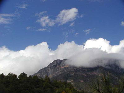 传说之三:从前瓦汝朴纳山男神与格姆女神是一对最亲密的阿夏。很久很久以后,多情的格姆女神暗中与隔江相望的玉龙雪山男神产生了阿夏关系。女神经不起风流英俊的玉龙山男神的诱惑,准备随他过江厮守,情真意切的瓦汝朴纳山男神知道后,真切挽留,执意阻止,然而女神已死心要走。朴纳山男神明知说服无效后,只好伸手抓着女神的手不让走,女神情急之下拔刀要砍朴纳的手,朴纳见飞刀过来不敢放手,便用头挡去,急疯了的女神一刀下来,正好砍在了朴纳山神的脸上,削去了朴纳山神的半边脸,刀削痕迹至今明显可见。然而衷情的朴纳山神为了不失去深深爱恋的格姆阿夏,强忍着伤痛死死反挟着女神的双手至今不敢放手。 |