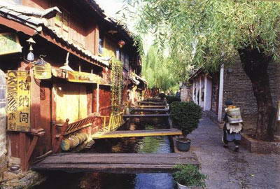 古城的街道,既发挥着道路的功能,又在历史长河中起到市场的作用。街市,也是古城最值得留恋的地方。不用说四方街的热闹,单说“卖鸡巷”、“卖猪巷”、“铜器街”、“卖布巷”……你就可以知道,丽江古城是世界上较早进行划行规市的地方,即今天的专卖,什么一条街,什么市场,什么一条巷。在古城里做生意,买什么,卖什么要到哪儿,都是相对固定的。