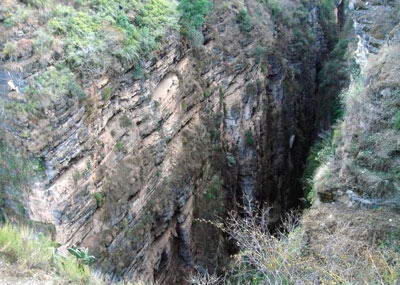 己衣大裂谷-金沙江旅游区 距武定县城123公里,现有弹石路相通。景区面积约30平方公里,有景点10余个。长约12公里的大裂谷,最宽处约200米,最窄处约6米,裂谷两侧鸡犬相闻,却难以相通,裂谷最深处300余米,深不见底,形成了惊险奇特的崖壁奇景。