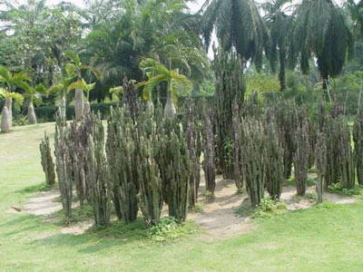 珍稀濒危植物林区,原始森林遮天蔽日,可见到板根大王四数木、林中巨人望天树、巨叶植物海芋、能够灼人的火麻以及老茎生花、树缠树等奇观。热带果木林中,有酸甜可口的当地名柚曼赛龙和勐仑早。林木中还有稀奇的神秘果、跳舞草和猪油瓜等,是“绿色明珠”的巧妙缩影。 在各类植物竞相比美的园林内,还建有科研大楼、植物标本馆、展览馆、蔡希陶纪念馆、蔡希陶塑像和民族度假村等人文景观和接待游人的各种服务设施。 |
