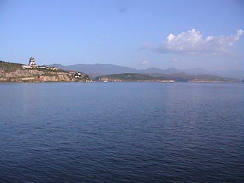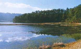 金梭岛是苍洱三岛中最大的岛,四面临水,高出水面约250米,南北长约800米,东西宽约100多米,中部低而南北偏高,形似一支织布的梭子,故名金梭岛。据《蛮书》记载,南诏王曾在岛上建避暑行宫,所以至今还能见一些残砖断瓦。由金梭岛往北约10公里,是一座秀丽的小岛玉矶岛,小岛高出海面只有4公尺左右,全岛似一块巨大的岩石构成,伫立水中,恰似天外飞来。岛上还建有观音阁,因此又有“小普陀”之称。 金梭玉矶两岛天然的自然风光为洱海之最,明代滇状元杨慎和大理文人李元阳二人同游苍山洱海,曾泛游两岛,杨慎作《游点苍?行记》,李元阳作“天生翼石似金梭,欲织银苍水上波;一树珊瑚藏海底,清光夜接月中娥”七言绝句诗传世。还曾有《五朵金花》等多部电影在此拍摄外景。 洱海源头镶嵌在洱源北三公里的坝子中,是一个不大的高原淡水湖,面积1.2万亩,却有一个非常美丽的名字——“茈碧湖”。茈碧湖三面环山,一扇洞开,呈菱形状,地虽不广,天格外蓝,山虽不高,亦多情态,湖自纤巧,亦显波澜。这里群山环抱,溪河交错,田园如织,村落相间。气候冬暖夏凉,宜人无比。湖周冬来红梅吐艳,夏日绿柳婆娑,常年竹木葱郁,群芳争妍,碧草如茵。湖水绿波漪澜,鱼跃水冒,海鸟群集,山色倒映。湖中生有世界珍稀名贵花卉茈碧花,成簇成片,洁白无瑕,清香四溢。据称,世界上只有日本、北京颐和园与茈碧湖有此名花。水花树是茈碧湖又一奇景,那一簇簇、一串串透明晶亮从水底不断往上涌出的水珠,形成一株株挂满珍珠的宝树,璀璨剔透,银光耀眼,如虹霓,若彩云,变幻莫测,绚丽多姿,五彩夺目,令人目不暇接,堪称茈碧湖一绝。