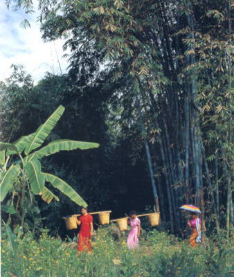 远方来的客人,从瑞丽市畹町开发区出发,沿着320国道畹町连接线行驶10公里左右就到了风景如画的生态园风景区。这里亚热带丛林密密匝匝,大青树枝繁叶茂,风尾竹摇曳多姿,透过茂密的树林,一道宏伟壮观的生态园大门向您讲述一个古老的大山林故事。走进生态园大门,绕过高高耸立的园标,就到了珍稀植物园。一踏进园门,大自然的绿色气息扑面而来,植物园占地6000多平方米,地面用青绿相间的砖块铺就,园内几棵高大的大青树浓荫如伞,遮盖了大半园林。“伞”下,桫椤、石梓、董棕等珍稀树种,牵枝搭叶、青翠欲滴。树前树后,点缀着星星点点的亭台竹屋,一对恐龙塑像,隐藏其间,给绿色的园林平添了神秘的气息。园的右侧是生态园标本馆,园内陈列着几百种动植物标本,可供游人欣赏,中央一条宽阔平坦的大道,直通园林深处,大道两旁董棕成行、绿草如茵。 沿着大道往里走一二百米就到了孔雀园。孔雀园是生态园的主体工程之一,占地15000平方米,园体采用钢丝围墙纤维网罩顶搭制而成,园内绿树成林、碧水成潭、草色青青。目前园内养殖的孔雀有白、蓝、绿3种,共千余只。这些孔雀体态优美、性情平和,它们或行或止,或鸣或飞,与游客和睦相处。每天清晨7—9时或下午5—6时,成群的雄孔雀展开漂亮的屏羽,向同类表达自己独特的爱情。其情其景,十分壮观。 与孔雀园隔路相望的是规模略小的蟒蛇园和动物园。这里养殖有金钱豹、马来熊、猴子、解蛇、鹰鹫等数十种飞禽走兽。这些动物有的生性凶猛,有的行动敏捷,有的憨态可鞠,组成了生态园的又一自然景观。 离开动物园继续往前走不远,就听到了百鸟欢鸣的声音,猛抬头,原来已到了百鸟谷。百鸟谷是生态园主体工程中的又一大景观,它坐落在绿树环绕、山泉潺潺的山间谷地。面积9600多平方米,园门建筑颇具特色,两只巨大的凤凰雕刻其上,清一色的琉璃瓦在阳光下闪烁着祥和的光彩。连接园门的是一顶高大开阔的纤维网罩,它高高架在山谷顶上,构成百鸟们的乐园。据介绍,百鸟园有各类飞禽100多种共计3000余只,主要有画眉、鹦鹉、鸽子、黄鸭、白鹇、白腹锦鸡、红腹锦鸡等,此外还有驼鸟、原鸡、白天鹅等飞禽。为便于它们生长和繁殖,园内除了保留一定的自然林外,还建有假山、水池、草亭等,供其歇息或嬉戏。倘佯园内,走在鸟雀中间,看鸟儿翔集、鸳鸯戏水、天鹅起舞,听悦耳动听的鸟鸣泉声,让人留连忘返,悠悠然陶醉其间。 |