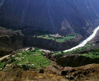澜沧江大峡谷不仅以谷深及长闻名,且以江流湍急而著称。冬日清澈而流急,夏季混浊而澎湃,该江年径流量8.38亿立方米。在l50km的流长里落差为504米,比降3.4%。狭窄江面狂涛击岸,水声如雷,十分壮观。如此陡峭的高山纵谷地形,如此奇异绝妙的地理构造,实为举世罕见。