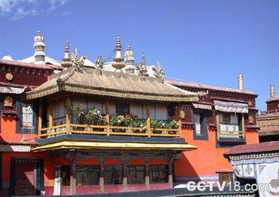 大昭寺座落在拉萨市的中心,是西藏佛教徒心目中的金色圣殿,同时也是藏汉团结友好的最有力的印证。 这座著名古寺始建于公元7世纪中叶,是西藏最早的木构建筑,当时是两层船形神庙,后经历代多次增修扩建,形成今天占地25,100平方米的大型建筑群。 传说大昭寺寺址最早是一片湖,松赞干布曾在此湖边向尺尊公主许诺,随戒指所落之处修建佛殿,孰料戒指恰好落入湖内,湖面顿时遍布光网,光网之中显现出一座九级白塔。于是,一场由千只白山羊驮土建寺的浩荡工程开始了。大昭寺共修建了三年有余,因藏语中称“山羊”为“惹”,称“土”为“萨”,为了纪念白山羊功绩,佛殿最初命名“惹萨”,后改称“祖拉康”(经堂),又称“觉康”(佛堂),全称为“惹萨噶喜墀囊祖拉康”意即由山羊驮土建的。“大昭”的的名字据说与始于15世纪的“传昭大法会”有关。 释迦神殿是大昭寺的主体,也是大昭寺的精华所在。殿内主供文成公主从长安携来的释迦牟尼佛像,这是整个藏传佛教信徒们皈依的中心。拉萨之所以叫拉萨(神地),也是源于这尊佛像。年年月月,春夏秋冬,每天前来朝拜和围绕佛像转经的信徒香客络绎不绝。 宗喀巴塑像前的金本巴瓶,为乾隆五十七年(1792年)御赐,瓶高34厘米,通体由莲花瓣纹,如意头纹和缠枝纹等图案组成,另有五彩缎制成的瓶衣。筒内有如意头象牙签5只,专供寻找活佛和呼图克图灵童时所用。二楼南侧法王殿供有藏王松赞干布、文成公主、尼泊尔公主、大臣禄东赞等塑像,也是早期的作品。二三楼之间有班丹拉姆护法神殿,这是大昭寺和整个拉萨城的护法女神。 顶层四座巨大的金顶分别建于公元14世纪中叶和17世纪,她们耸立于拉萨古城的中央,如神鸟大鹏展开金翅,在高原特别亮丽的日光下熠熠生辉,使大昭寺这座千年古庙的建筑整体显得格外神奇壮观。大昭寺前的公主柳,相传是当年文成公主亲手种植,相传公主在拉萨种植的柳树不仅仅是这一颗,还有三颗分别种在布达拉宫下、小昭寺前和东城的八朗雪(黑帐篷)附近。公主柳旁的甥舅会盟碑,是公元822年唐蕃会盟时所立。 由正门进入后沿顺时针方向进入一宽阔的露天庭院,这里曾是规模盛大的拉萨祈愿大法会"默朗钦莫"的场所。届时拉萨三大寺的数万僧人云集于此,齐为众生幸福与社会安定而祈祷,同时还举行辩经、驱鬼、迎诸弥勒佛等活动。“默朗钦莫”始于公元1409年,最宗喀巴大师为纪念释迦牟尼以神变之法大败六种外道的功德,召集各寺院、各教派僧众,于藏历正月期间在大昭寺内举行祝福祝愿的法会而建成的。庭院四周的柱廊廊壁与转经回廊廊壁上的壁画,因满绘千佛佛像而被称为千佛廊。整座大昭寺的壁画有4400余平方米。 继续右绕,穿过两边的夜叉殿和龙王殿,数百盏点燃的酥油供灯的后面便是著名的“觉康”佛殿。它既是大昭寺的主体,也是大昭寺的精佛之所在。佛堂呈密闭院落式,楼高四层,中央为大经堂。藏传达室佛教信徒认为拉萨是世界的中心,而宇宙的核心便在于此处。目前这里是大昭寺僧人诵经修法的场所。从大经堂正可遥遥看见造型精美的千手千眼观世音塑像,两侧有两尊装饰华丽的佛像,左为莲花生,右为强巴佛塑像。 大经堂的四周俱为小型佛堂,除位于正中心的释迦牟尼佛堂外,开间均不大但布置简洁。释迦牟尼佛堂是大昭寺的核心,这里是朝圣者最终的向往。此殿供奉的释迦像是文成公主所带的佛像。 沿千佛廊绕“觉康”佛殿转一圈“囊廓”方为圆满。这便是拉萨内、中、外三条转经道中的“内圈”。拉萨主要的转经活动都是以大昭寺的释迦牟尼佛为中心而进行的,除“内圈”外围绕大昭寺则为“中圈”即“八廓”,也就是古老而热闹的商业街——八角街;围绕大昭寺、药王山、布达拉宫、小昭寺为“外圈”,即“林廓”,已绕拉萨城大半。 大昭寺内的各种雕刻风格特殊。在大殿周围的廊殿间、殿门、梁架、廊枋上,都雕刻着各种生动的图案。大殿内还有与敦煌石窟相似的飞天浮雕柱头;在初檐与重檐间有半圆雕的人面狮身伏兽作了承檐,雕梁画栋,绚丽夺目。大昭寺内保存着各类佛像、唐卡、法器、供器等宗教艺术品,其中有一副刺绣“胜乐佛”唐卡,系明永乐皇帝时所赐,为国内所罕见的珍贵文物。此外,寺内还收藏着相传为文成公主带进藏的形式古朴的乐器和羊头壶等文物。 |