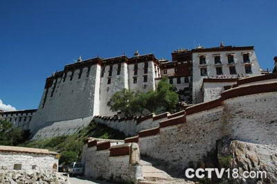 布达拉宫是西藏自治区内最完整最宏伟的一座古建筑。“布达拉”是普陀罗(普陀)的译音,意即菩萨住的宫殿,相传公元七世纪时,吐蕃赞普松赞干布与唐联姻,为迎娶文成公主而建成此宫,今尚存法王修法洞和观音佛堂两处早期建筑。现有建筑群为17世纪中叶五世达赖受清朝册封后开始兴建,并经过历代达赖不断扩建而成。1959年前,布达拉宫是五世达赖之后历代达赖喇嘛生活起居和从事政治活动的场所,是旧西藏政教合一的统治权力中心,从七世纪起,先后共有九个赞普(藏王)和十位达赖在这里居住过。 布达拉宫由红山南麓奠基,缘山而上,依势迭砌,从平地直达山顶,几乎占了整座玛布山(红山)。布达拉宫高117米,东西长360米,外观13层,实为9层,面积约12万平方米,殿宇巍峨,金顶辉煌,共有佛堂、经堂、灵塔殿、习经室15000多间(按西藏建筑计算办法以柱计算)。整个建筑系石木结构。用块块方石垒砌,高大宽敞的殿堂墙上绘有各种色彩鲜艳的壁画,室内陈设有几十万个用金、银、铜、玉和檀香木等雕铸的大小佛像,造型生动。集中体现了藏族人民高度的建筑成就和独特的艺术风格。