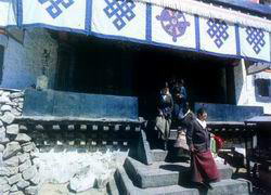 麦如寺也叫麦如扎仓、第柱拉章。此寺系由吐蕃赞普赤热巴巾建立于公元817年,是西藏五大“杰布呼图克图”之一第柱呼图克图驻锡之寺。麦如寺坐落在拉萨市内今西藏话剧团所在地,总占地面积13.5亩。正中主殿是以前二后三层的建筑结构构成,第一层为一大经堂。连接主殿大厅呈方形为三层僧舍,房屋300。据史料记载:吐蕃时期著名的“三大法王”之一赤热巴巾赞普在位期间,大力倡导和发展佛教。他除了倡导翻译经典、改革藏文以外,还大力提倡礼拜僧侣,修建寺庙,同时还规定了“七户养一僧”制度。他于公元817<年,就是赤热巴巾18岁时,又在大昭寺周围倡建了六座小经堂(拉康)。在东面建有“噶如”和“麦如”二经堂;在南面建有“噶瓦”和“噶瓦蔡”二经堂;在北面建有“扎康”和“强康”二经堂。麦如即是现今的“麦如寺”。 |