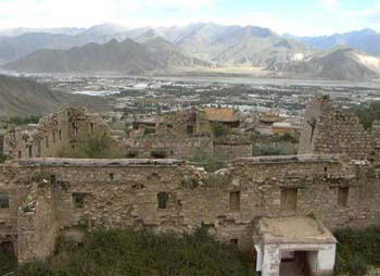 乃旦寺位于昌都地区类乌齐县加桑区雨扎乡乌入村东南约二百米高的山上。这里气候温和,土地肥沃。该寺四面山峦遍布着葱绿的树木。吉曲河水西流,景色宜人。因北面的多宗山犹如十六尊罗汉,该寺由此而得名乃旦寺(罗汉堂)。 乃旦寺由大伏藏掘藏师觉久林巴(贡觉旦增)于藏历第十四绕迥铁龙年(公元1820年)建,至今已有一百多年的历史。该寺分为三个部分。第一部分,上妙不变佛殿为二层藏式平顶建筑。下层为佛殿,四柱,东西长740米,南北宽612米,面积四大天王壁画。殿内西边有壁塑佛龛,共有26个龛,每龛大小不一,中央壁塑龛穹隆形,顶为泥塑歇山式。内曾供有释迦牟尼佛铜像及红教尊师泥塑佛等,今已散失无余。殿内四周壁画由于房顶漏雨,山墙断裂,壁画冲刷严重。 佛殿北面有一座两层楼房。上层为修行静室,共有十四间,其中一间为经典房,内供有《甘珠尔》和《丹珠尔》二套。下层有厨房、仓库、僧舍共八间。佛殿东面是护法神殿,九柱,高二层,内供泥塑的护法神九尊,四周墙壁上绘有千尊佛及文殊、金刚手、观世音、地藏、除盖障虚、空藏、弥勒和普贤八大菩萨壁画。绝大部分模糊不清。上层为僧房(修行室)。该殿背后有一由白玛久美所建的威宝集会大殿。坐北朝南。系该寺主要建筑。集会大殿前方两侧各有一座两层僧房,不是同一时期所建。僧房前筑有明廊,主次分明,大殿平面呈长方形,东西长25米,南北宽11.26米,24柱,大门宽2米,高3米左右,殿前门为屏风式。殿内侧绘有莲花生千尊佛,东西两面无壁画。北面为经架,经回上放有《甘珠尔》和《丹珠尔》各一套。西面为壁塑佛龛,共有26龛,每龛大小不一。保存完好。中央壁画佛龛高1.56米,进深0.82米,宽1.13米。内供有泥塑释迦牟泥,其两侧供有泥塑舍利子和目犍连两大弟子,已被毁无存。周围泥塑为妙高处,狮子、翅鸟独居大象等分居两旁。整个壁塑佛龛周围均有山水、花木、云海波浪、滴水悬岩,还有仙山琼阁等,两边特塑有大白螺各一个。泥塑形式多样,栩栩如生,整个壁塑均涂有各种颜色。显得古朴、庄严。 威宝集会大殿的二、三层楼均为僧舍、厨房、仓库。西边有一两层楼建筑,是该寺最早建筑,由大伏藏掘藏师贡觉旦增创建,后为各世活佛居室,名为密咒宫殿。其建筑为藏式平项式,矮屋小门,保存完好。现藏有旧唐卡50多幅。该寺具有独特的艺术风格,对于研究红教后期的发展提供了珍贵的历史资料。 |