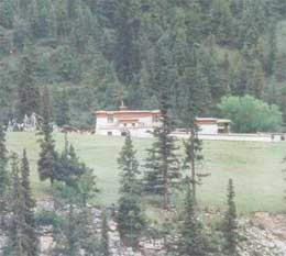 朱角山位于昌都县俄洛乡境内,国道317线旁,此山山腰处现存成片地唐代古柏树,树龄1300多年,举世罕见有。山对面还有一个称之为作揖卡地坝子。坝中有昌都强巴林寺第四大活佛加拉的夏季避署圣地。这里风景优美,气候宜人,是昌都附近最理想的耍坝子的地方。在坝子北面的山谷里,有汪季节性的温泉。 |