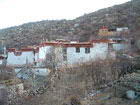 在沃卡乡政府所在地以南,沃德贡杰山北蝠,曲龙寺依山而立,背靠雄伟的沃德贡杰雪山,面向辽阔的沃卡草原。 曲龙寺是恪鲁派的早期寺院之一,1393年,36岁的格鲁派创始人宗喀巴大师“率同师徒弟子共九人赴沃卡却隆静修”宣传格鲁派教法。当时沃卡宗的宗本扎西伦珠因笃信佛教,自愿作了这师徒九人的施主。宗本极力要求为这九名在岩洞中修行的师徒修建一座道场。于是在宗喀大师的应允旨意下修了一座长14肘,宽11肘的经堂,直到1969年这座经堂依然如故,这就是曲龙寺初建的情况。以后“大师拜三十五佛忏,手足指皆已破裂,石上磨成手足和头部迹印。复在一个比较大点的而根也很稳固的四方石盘上作曼荼罗供,以腕部磨试,两腕皆伤,把石磨转得很平滑”。这两块石头就由他的弟子供奉于寺院之内,至今遗迹仍在,成为该寺的镇寺之宝。 从此以后宗喀巴大师以曲龙寺为落脚点,在沃卡一带传授格鲁派教法。在格鲁派教轨日趋完善的同时,在该寺决定了修建格鲁派的主持寺院----甘丹寺。据说宗喀巴在曲龙寺北面祈祷了甘丹寺的修建,后人为了纪念,就在他祈祷的地方修建了一座佛塔。 |