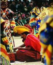在安多县境内,位于县驻地以东50公里的丹堆乡,佛法传到藏北草原,牧民们最早把佛法佛像安置在帐篷里,久而久之,草原上便出现了众多的帐篷寺庙。 其中最有代表性的是柏尔贡巴帐篷寺庙。始建于1654年,已有三百多年的历史。它是藏北保存完好具有相当规模的惟一帐篷寺庙。这座寺庙由措钦(大经堂)、拉康(佛殿)和扎厦(僧舍)等各种帐篷组成,与西藏其他地方的佛教寺庙一样。 寺庙前部有僧众集会诵经的大经堂,后部是安奉佛、菩萨的佛殿堂,四周是帐篷僧舍。柏尔贡巴兴盛时期,僧人有200多名,僧舍帐篷大小有上百个,形成藏北草原上一处独特而壮丽的人文景观。 措钦是用80根木柱支撑的一个巨大的黑色帐篷,可以同时容纳200名僧人诵经。拉康帐篷里外是布质,中间夹毡,再以木棍支架支成的圆顶帐篷,类似蒙古包。 僧舍是各种各样的小帐篷,质地、大小不一,一般都是僧人从家里带来的,有的住1人,有的住2—3人。柏尔贡巴最兴盛时喇嘛多达200多人,僧舍帐篷近百个。该寺的佛像很多,主供佛为“土钦夏扎”最为珍贵。 |