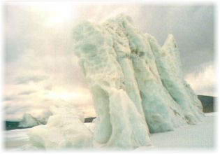 有些冰塔的底部经过融化,形成了许多干净而舒适的冰房,门前挂着由许多细长的冰柱构成的帘子,步入其中稍坐片刻就有一种温暖如春的感觉。如此千姿百态,光彩夺目的冰塔林无疑是大自然在千百年塑造的冰塑,属于造物主的工艺品,可称得上是举世无双。