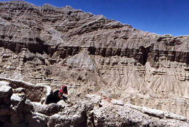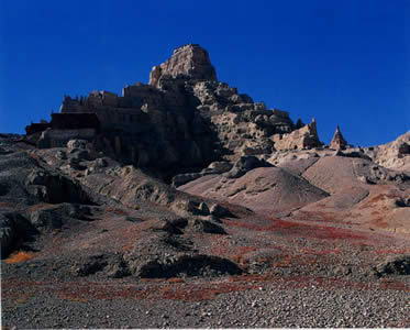 从山下到山顶的王宫,只有一条人工开凿的暗道可以通达。遗址中还有大量的防御性建筑,如山脚处的城墙,山腰上重叠设置的障墙、碉堡,以及绝壁内四通八达、线路复杂的隧道等。另外,山的西侧还设有盘旋的取水道,由山顶直通山下的水源。 遗址内及其附近可以看到许多残破不全的甲衣、盾牌和散乱的箭杆,还有到处堆积的卵石,都是当年战乱留下来的遗物。在距遗址不远的一个山洞里还堆积着许多无头干尸,估计是覆灭时被敌杀害的古格将士的尸体。 古格王国在西藏的文化史上占有重要的地位。当时,一方面古代印度的佛教从这里传入西藏腹心地区;另一方面这里有古代的商路经过,是西藏对外贸易的重要商埠之一;另外,在吐蕃王朝灭亡以后,西藏进入400年分裂的局面中,古格王国一直是势力较为强大的王朝。 神秘的古格王朝300年前一夜之间在历史上消失,留给我们的只有那记录了古格灿烂辉煌的文化艺术成就的遗址。 就在15年前,古格对于许多人来说还是一个陌生的名词。但自从1985年西藏自治区文管会组织的考察队在此展开了一系列收获巨大的考古工作以后,这个消亡了350年的王国突然出现在人们的视野里,并吸引了越来越多的旅行者。 近十数年间古格遗址周围不断发掘出的雕刻、造像及壁画等揭开了古格王朝的神秘面纱。 古格雕塑多为金银佛教造像,其中成就最高的是被称为古格银眼的雕像。而遗存数量最多、最为完整的是它的壁画。古格壁画气势宏大,风格独特,全面地反映了当时社会生活的各个方面。所绘人物性格突出,用笔洗练,丰满动感的女性人物尤具代表性。由于所处地理位置及受多种外来文化的影响,古格的艺术风格带有明显的克什米尔及犍陀罗艺术特点。 古格盛产黄金白银,在托林寺、札不让、皮央东嘎都发现过一种用金银汁书写的经书,而且出土的数量极大。这种经书以文书写在一种略呈青蓝色的黑色纸面上,一排用金汁、一排用银汁书写,奢华程度无以复加。 最早对这座古城遗址进行考察的是英国人麦克活斯·扬。1912年,他从印度沿象泉河溯水而上,来到这里进行考察。此后便有探险家、旅行者、摄影家和艺术家们源源不断地来探奇访幽。但真正的科学考察是从1985年西藏自治区文管会组织的考察队开始的。以他们实地测量,遗址总面积约为72万平方米,调查登记房屋遗迹445间,窑洞879孔,碉堡58座,暗道4条,各类佛塔28座,洞葬1处;发现武器库1座,石锅库1座,大小粮仓11座,供佛洞窑4座,壁葬1处,木棺土葬1处。 古格王国遗址是全国首批重点文物保护地之一。现在的遗址从山麓到山顶高300多米,到处都是和泥土颜色一样的建筑群和洞窑,几间寺庙除外,全部房舍已塌顶,只剩下一道道土墙。遗址的外围建有城墙,四角设有碉楼。整个遗址建在一小土山上,建筑分上、中、下三层,依次为王宫、寺庙和民居。红庙、白庙及轮回庙中的雕刻造像及壁画不乏精品。围绕古格都城周围的重要遗址还有东嘎、达巴、皮央、香孜等,都有大量文物遗存。 历 史 古格王朝的前身可以上溯到象雄国,王朝的建立大概从9世纪开始,在统一西藏高原的吐蕃王朝瓦解后建立的,到17世纪结束,前后世袭了16个国王。它是吐蕃王室后裔在吐蕃西部阿里地方建立的地方政权,其统治范围最盛时遍及阿里全境。它不仅是吐蕃世系的延续,而且使佛教在吐蕃瓦解后重新找到立足点,并由此逐渐达到全盛。因此古格王朝在西藏历史上具有重要意义。