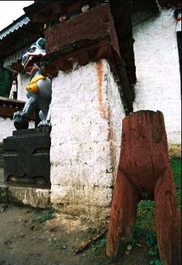 风景如画的西藏林芝地区,是许多旅游者的必去之地。离林芝县30多公里的喇嘛岭寺鲜为人知,一段山间土路并不好走,但驶上山腰来到寺里,却令我们大开眼界:前往寺门的小径边立着据说是天然林木形成的男性下身,生殖器上拴着信徒敬献的哈达;寺门边一左一右分别立着一个硕大的男性生殖器,和一个女性下身,其生殖器也维妙维肖,据说也都是天然木材形成。这些都是信徒崇拜的生殖图腾。
