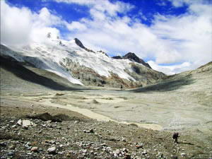 阿扎冰川属海洋型冰川,位于察隅县上察隅镇境内,雪线海拔只有4600米,朝向西南,长20公里左右。其中,冰川的前沿部分深入到原始森林区长达数公里,犹如一条银色巨龙穿行于“绿色海洋”之中。所以,阿扎冰川又被人们亲切地称为“绿海冰川”。由于从沟末端到沟顶海拔高差6000米以上,所以同在一条沟,十里不同天,具有亚热带到寒带的所有气候特征,冰川的地形地貌由高向低分为三个阶梯:第一阶梯是冰川的形成区。在这个区域里,由于海拔高,除可作专业登山队的训练基地外,一般旅游者无法涉足。只能从高处远眺其雄伟壮观的风姿。第二阶梯是冰川中间的大冰瀑布,第三阶梯是冰川下端的冰川舌。巨大的冰川好似巨大的银屏凌空飞挂,银光刺眼,晶莹璀璨,气势磅礴。这些状若玉龙,势如巨蟒的冰川,蜿蜒飞舞于寒山空谷之中,千姿百态,蔚为壮观。 |