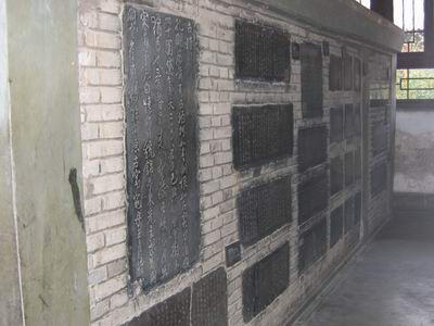 此碑由4块石头组成,底下有石台,因而称“石台孝经”。陈列室里主要陈列,内容包括《周易》6卷,《尚书》13卷,《诗经》20卷,《周礼》11卷,《礼仪》17卷,《礼记》20卷,《春秋左氏传》30卷,《春秋公羊传》12卷,《尔雅》3卷,以及《公羊春秋》、《孝经》、《论语》等12部经书,共计650252字,用石114方,两面刻文。清代补刻的17面3万余字也陈列于此,合称。