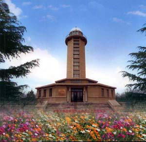 大地原点的整个设施由中心标志、仪器台、主体建筑、投影台等四大部分组成。高出地面25米多的立体建筑共七层,顶层为观察室,内设仪器台;建筑的顶部是玻璃钢制成的整体半园形屋顶,可用电控翻开以便观测天体;中心标志埋设于主题建筑的地下室中央。建成后不久,“大地原点”还增设并施测了国家基本重力点和天文基本点。 |