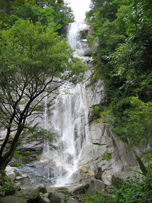 进入景区,穿树林、越小溪,大约10分钟就可见刀砍斧劈的悬崖,一道清泉从崖头倾盆而下,形成高60米、宽10余米的水帘。帘上冲刷出偌大一个水潭,潭水清澈,鱼蟹嬉戏其间,别有一番情趣。 瀑布从悬崖顶上的裂隙中飞流之下,倾泻崖下深潭,形成水帘,散出一派迷离的银光。瀑布如阵阵沉雷,借助水潭崖壁的回音,演奏出非凡雄伟的乐章,水雾弥漫,如烟如幻,其色其声,使人陶醉。走进瀑边,倍感清凉透彻。