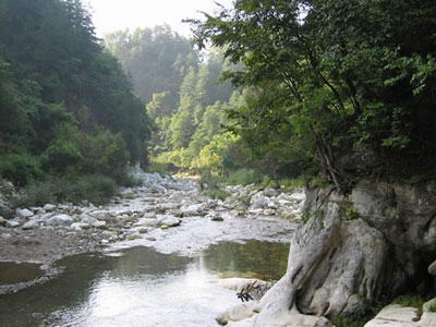 远观瀑布挂入云端,而翻上溪顶,则又入一层天地;山远林深,直通小青龙垭山顶,长达30馀里,溪水终年不断,源远流长所致也。且溪间藤蔓密布,山杨柳横穿其中,游人乘凉或友人幽会,更有一番乐趣。诗曰:冬挂水帘夏白花,终年飞腾绝壁中。十八丈高何足论,心旷神怡乐无穷。 |