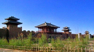 敦煌影视城又名“仿宋沙洲城”,“敦煌电影城”,是1987年为中日合拍大型历史故事片《敦煌》,以宋代《清明上河图》为蓝本,仿照沙州古城,由日方出资,参考中国古代建筑风格精心设计、建造而成的人文景观和影视拍摄基地。建筑面积1.27万平方米,位于敦煌市至阳关公路的南侧大漠戈壁,距市中心25公里。