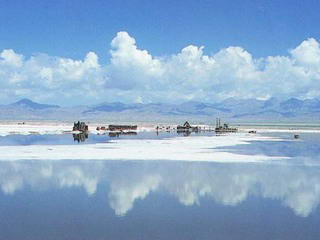 茶卡盐湖,已有3000多年的开采史。游客在此既可观赏盐湖风光,又可参观机械化采盐作业,这是一个盐的世界,车上、地上、甚至空气里都有盐味,远处有挖盐船在挖盐;近看这些盐,是像水晶状的晶体;尝一尝,味道与食盐略有不同。