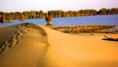 亚西达西湖位于轮台县东南62公里处。千百年来塔里木河在汛期溢出大量的洪水,在大漠中形成了大小毗邻的湖泊,滋养着大面积的抗御风沙的胡杨、红柳。春季绿树掩映,秋季胡杨灿灿,偶尔有一两个罗布人在湖中捕鱼,是个鲜为人知、与世隔绝的“世外桃源”。