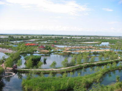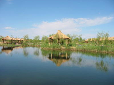 园区依托伊犁河独特的自然原始风光挖掘而成,包括民族风情别墅区,动物观赏区,葫芦岛表演区,跑马狩猎区,垂钓休闲区,自驾车区、花卉温室种植区,家禽养殖区等十几个小区,风格各不相同。这里小桥流水,清澈见底,游鱼欢歌;这里蓝天碧云,空气尤为清新;这里芦苇遍布,次生林点缀,伊犁河湿地滋生了独特的植物资源,野沙枣、野沙棘、野柳、野桑等十几种野生树种,是各类动物繁衍栖息的最佳之地,哪怕是乍暖还寒的春天,青蛙们早已鸣叫赞歌。