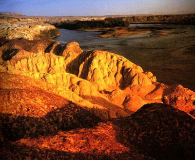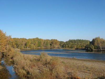 额尔齐斯河下游的大支流布尔津河和哈巴河的河床中,心滩林立,碧水茫茫,河谷中湖沼密布,水草丛生,阡陌相连,绿树成荫,呈现一派“大漠水乡”的壮丽图景。布尔津县以下夏季可通小汽轮,可与邻国哈萨克斯坦开展跨国水上旅游。 |