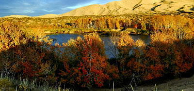 白沙湖位于一八五团三连海拔650米,被称为“沙漠奇景”的白沙湖,金秋十月,似一幅巧夺天工的天然画卷,碧波荡漾,野荷浮面,接天莲叶,芦苇荡荡;湖岸高大茂密挺拔的银灰杨、额河杨、白杨、白桦、红柳、野山楂、野石榴、绣线菊、爬地松层林尽染,红、黄、白、绿树相互映衬;湖面如镜,波光粼粼,湖光山色,远眺近览,气象万千;金黄的沙漠在阳光的照射下,散发出阵阵的清香,令人陶醉;五彩植被倒影水中,层层叠叠,交相辉映;野鸭、鸿雁游弋其中,灵气顿生;无论从哪个角度看白沙湖,都有异样的景观,让人恋恋不舍,醉然其中,疑是江南美景,成为国内外探险旅游者、摄影爱好者的乐园。