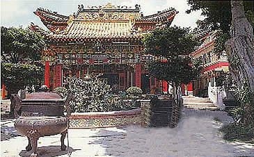 青松观大殿彩绘雕栋,华丽精巧,前有拜亭,与大殿相连,顶为两重卷棚式,复以黄色琉璃瓦,富丽庄严。殿上供奉主神为吕纯阳,两侧有王重阳和邱长春(处机)祖师塑像陪祀。神龛雕刻精美,神坛饰品古朴典雅,配以现代繁花灯彩,别有岭南情趣。 青松观从上世纪后期,一直致力于使道教走向世界的工作,在澳大利亚的悉尼,美国,加拿大和新加坡等地建有分观。 |