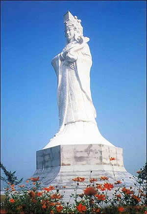 妈祖像位于路环岛迭石塘山顶,是迄今全球最高的汉白玉妈祖像。妈祖像由澳门中国画院院长梁晚年先生设计,由一百二十块汉白玉石雕刻而成,身高十九点九九米,其中面部由一块独立汉白玉石雕刻而成,总重量超过五百吨,於一九九八年十月二十八日落成。