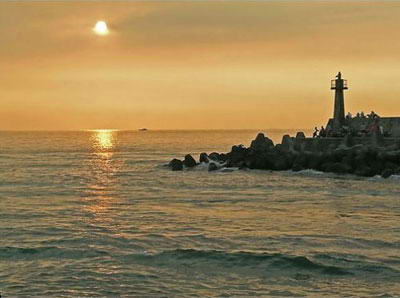 淡水漁人碼頭迷人之處 淡水漁人碼頭原只是一個傳統的小漁港,如今,漁人碼頭不但擁有一座美輪美奐的浮動碼頭,其中漁人碼頭最著名的景點,就是330多公尺的木棧道、堤岸咖啡和超大的港區公園,構成一個環狀動線,讓人們可以完整流暢的體驗漁港風情,站在步道遠眺對面的觀音山和出海口盡頭的台灣海峽,看著夕陽從水平面上緩緩落下,美景之盛,令人流連忘返。