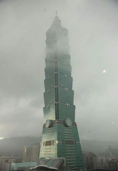 台北101大厦简介 台北101(TAIPEI101)是位于中华人民共和国台湾省台北市信义区的一栋摩天大楼。由建筑师李祖原设计,KTRT团队建造,是世界最高摩天大楼(不含天线)和目前全世界第二高的大楼(以建筑结构实际高度来计算)。在规划阶段初期,原名台北国际金融中心(Taipei Financial Center)。 高摩天楼台北101 以实际建筑物高度来计算,台北101已于2007年7月21日时,被当时兴建到141楼的迪拜塔(阿拉伯联合酋长国迪拜酋长国)所超越。但是由于迪拜塔在正式完工或至少有部份厂商、住户进驻之前,仍只能被视为是一座人工建筑结构而非摩天大楼,因此台北101仍能暂时保有世界最高摩天楼头衔直到新的对手完工、取而代之为止。