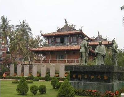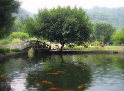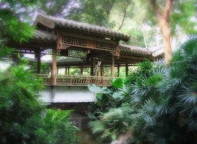 至善园^至德园入口旁的林荫下散置着石桌椅,古人端坐桌前抚琴的石像,生动地诠释出幽篁琴啸的情景。步径穿过奼紫嫣红的九重葛花棚与枝叶浓密的老榕树,行来倍觉清爽;池塘里睡莲、荷花争相绽放,沿着堤岸步上曲桥,彷如踏入莲花田,花姿随风摇曳,引人垂怜。 |