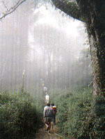 观雾森林游乐区是跨新竹县五峰乡及苗栗县泰安乡两境,目前已划入雪霸公园管辖,为公园西北园区重要的游憩景点,海拔约2000公尺,终日云雾腾漫,正是“观云赏雾”的好地方,“观雾”之名由此而来。园区由数条步道串连而成,包括八仙瀑布、柳杉树海、桧山神木、观雾瀑布和榛山瀑布等主要景观,为攀登大霸尖山必经之地,并以大鹿林道及南清公路(122县道)对外联络,为观云海、赏生态、看神木的最佳去处。 园区以观雾山庄为中心,大鹿林道东西线、观雾瀑布步道、榛山步道、乐山林道、桧木巨木林道等步道串连各景点;观雾山庄展望极佳,于此眺望,大霸尖山、小霸尖山、品田、雪山等名峰一一可指。 园区内森林生态相当丰富完整,虽大部分面积皆为人工造林地所覆盖,但林下衍生出的次生植被却是气象万千,加上此处特有的原生植物,以及刻意栽种的观赏植物等,使得观雾的四季呈现出不同的美。如春天的山樱、牡丹、森氏杜鹃;夏季的凤仙花、黄菀、八仙花;秋冬时台湾檫树的金黄和枫的火红,都是观雾精采难得的景致。 除了美还有奇,沿着桧山巨木森林步道,可见棣慕华凤仙花以及黄花凤仙花,两者由于族群数稀少,已列为台湾稀有及亟待保护的植物;而位于大鹿林道的马达拉溪谷则有全台最大的台湾檫树自然保护区,面积广达23.5公顷,檫树及以其为食的宽尾凤蝶,均是稀有珍贵的国宝。 大鹿林道为观雾联外的主要道路,沿途景致秀丽,其中八仙瀑布垂挂于大鹿林道8公里处的山际中,青纱白练,风景如画,林道21公里处之后的树海是人工柳杉造林地,树龄已将近30年,雄伟壮观。行径此处,每当水气氤氲,壮阔的云海便在脚下铺陈,因此每次的山回路转,总是带来不少惊喜。 桧山神木为观雾最具看头的景点,座落在鹿场大山海拔2300公尺的东延棱线上。桧山神木共有5株,均为珍贵的老红桧,茂密繁盛,欣欣向荣,令人不禁要赞赏大自然奇特的生命力。 观雾森林游乐区另有两条步道系统,一条可通往气势磅礴的观雾瀑布,全程约1.5公里,尽头为一座凉亭,于此可远观瀑布,瀑布高约30公尺,壮阔的水势,每每将瀑底淘空,而形成一深水潭,附近因为岩壁松动,因此禁止游客前往。另一条则可抵海拔2489公尺的榛山山顶,此为欣赏日出云海的极佳据点,并可远眺大霸尖山及雪山群峰,途中还可顺访榛山瀑布。 交通指南:无公车直达,可由新竹市或竹东包车上山,详洽大宇(03)532-1703、世豪游览公司(037)478-233。 注意事项:观雾属山地经常管制区,前往时须携带身份证于当地办理入山登记。 |