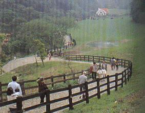 以牧场风光驰名的中部青年酪农村飞牛牧场,地处通霄镇南和里的山坡地,绵延青翠的大草原,成群的牛羊,宛如纽澳牧野的翻版,为台湾西部首屈一指的休闲牧场。如今,在休闲农业的风潮下,牧场除了畜牧的本业外,也转型成农村体验、生态保育、自然休闲的渡假乐土。 飞牛牧场占地45公顷,空间系采美式牧场规划,一眼放去,牧草原辽阔无际,一派自然豪迈的恬适风情;蜿蜒的木围篱、黑白相间的牛悠缓踱步,氛围悠闲清新;空气中的青草香,令人为之神清气爽。矗立草原上的一栋栋红顶小木屋,为牛儿们休息的牛舍;旅客服务中心及住宿木屋,也带有浓厚的欧美农宅风味;而环抱牧场的保安林,苍木森然,更凭添一份清丽气息。 牧场后山尚有一条颇具历史意义的挑盐古道,古道以圆石排成阶梯,沿途浓荫蔽天,由此可通往九华山大兴善寺。 交通指南:1.由苗栗、新竹火车站前搭往大甲的苗栗客运,或由台汽台北北站搭往沙鹿的班车,皆于通霄站下,转搭往福兴的苗栗客运,于崎下站下车,循指标步行约20分钟可抵。 2.搭海线纵贯铁路于通霄站下,续行同上。 |