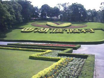 西湖度假村景色 西湖度假村里面建造有凡尔赛花园、亲子乐园、森林浴场、高尔夫球场、游乐场、花园餐厅、观湖台以及名人表演广场、蛇木雕刻艺术等。凡尔赛花园依地势筑建,园内绿草如茵,花卉缤纷瑰丽,各式雕塑喷泉巧布,显得外浪漫。坐落在山丘间的两栋欧式造型的建筑——咖啡艺术馆和餐厅,橘红色的屋顶,淡黄色与纯白色相间的木墙,十分高雅优美,与花园相映成趣。山坡上遍植油桐树、相思树和观音竹,是森林浴的理想场所。