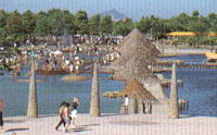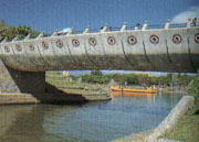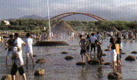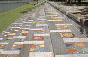 龙坡的阶梯上,是一方方有趣的镶嵌图画,这是800位宜兰小朋友用贝壳、弹珠、陶片所做成的水泥贴画杰作,鲜艳的色彩、随兴的构图,都使海洋世界、田园风光等贴画突显朴拙童趣。 划船区