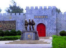 古宁头战史馆是一座城堡式钢筋水泥建筑,位于古宁头战场遗址,于1984年始建。 战史馆正门两侧墙面上有大型浮雕,两旁草坪上则有“金门之熊”─M5A1型坦克。正前方圆环还有“三勇士”塑像,整体外观弥漫着令人肃然起敬的气氛。 交通指南:可至金城车站,搭10路往湖浦宁或搭11路往顶浦宁的公车前往,在北山站下车,循战史馆标示步行约十五分钟即达,班车间隔约一小时。 |