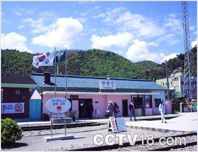 正东津是之所以得名,是因为它是李朝时期汉阳光化门正东方海边的一个码头。共有310户,1021人,既无茶舍亦无旅馆,是一个小渔村。 正东津站是世界上离海最近的火车站,因而被收入世界吉尼斯记录大全。在此站下车,最先看到的是大海和一棵弯弯曲曲的松树。
