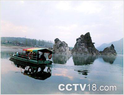 航线为玉笋峰、龟潭峰、万鹤天峰、草屋岩、鲸鱼岩、玄鹤峰、五奴峰、神仙峰、降仙台、杨柳峰、五星岩、雪马峰、燕子峰、斗武山等,直至新丹阳(长怀)渡口。在清风渡口附近还可乘船观赏亚洲地区第二高的高射喷泉。